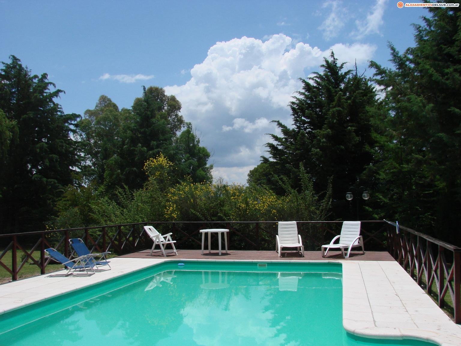 Las cabañas están totalmente equipadas. El servicio incluye desayuno en la cabaña, servicio de mucama y ropa de cama. No incluye toallas para la pileta. El predio cuenta con una hermosa piscina con vista a las sierras, cocheras cubiertas, parrillas individuales y una añosa arboleda. DirecTV y Wi-Fi. Podés ver fotos en facebook, de las cabañas y del complejo.