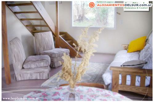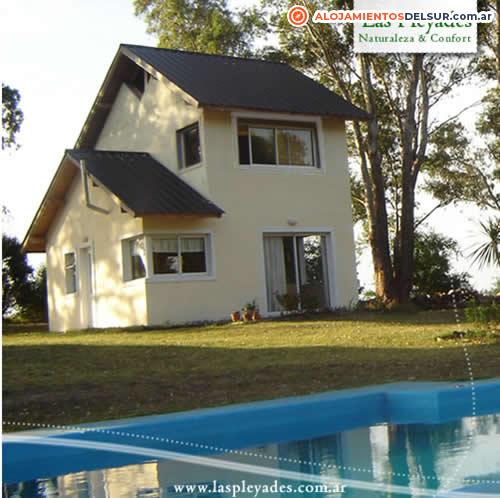 Cocina completa, horno microondas, heladera con freezer, ropa de cama, living comedor, salamandra u hogar a leña, Internet por WI-FI, vista panorámica al Cordón Serrano y el Sembradio, piscina, solarium, amplio bosque-parque de 22.000 m² con eucaliptus, aromos y pinos, parrilla. (Opcionales: servicio de mucama, lavandería).