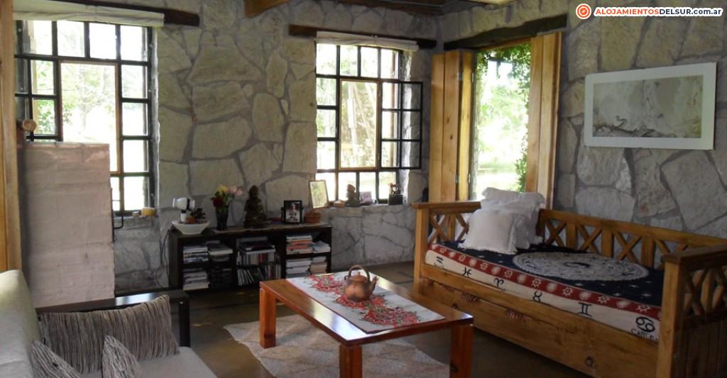 Cabañas Munay - Alquiler de Cabañas en Laguna La Brava, Balcarce, Buenos Aires. Tranquilidad a las orillas de la laguna y actividades en las sierras. La cabaña se encuentra construida en piedra y madera en un espacio que posibilita la tranquilidad, la armonía y el contacto con la naturaleza. Interior de la cabaña: Espacios ampliamente confortables, con cálida decoración interior, ventanales a los cuatro puntos cardinales con capacidad para albergar hasta cuatro personas. Cama matrimonial. Diván cama para dos personas. Ropa de cama y baño. Anafe. Horno eléctrico. Vajilla completa. Heladera. Baño completo. Termotanque con agua caliente las 24 hs. TV y DVD. Calefacción mediante estufa rusa a leña. Exterior: Amplio parque de 4500 m2. Bosque de pino, robles, acacios, eucaliptos, aromos. Parrilla individual. Horno de barro. Muebles de jardín. Árboles frutales.