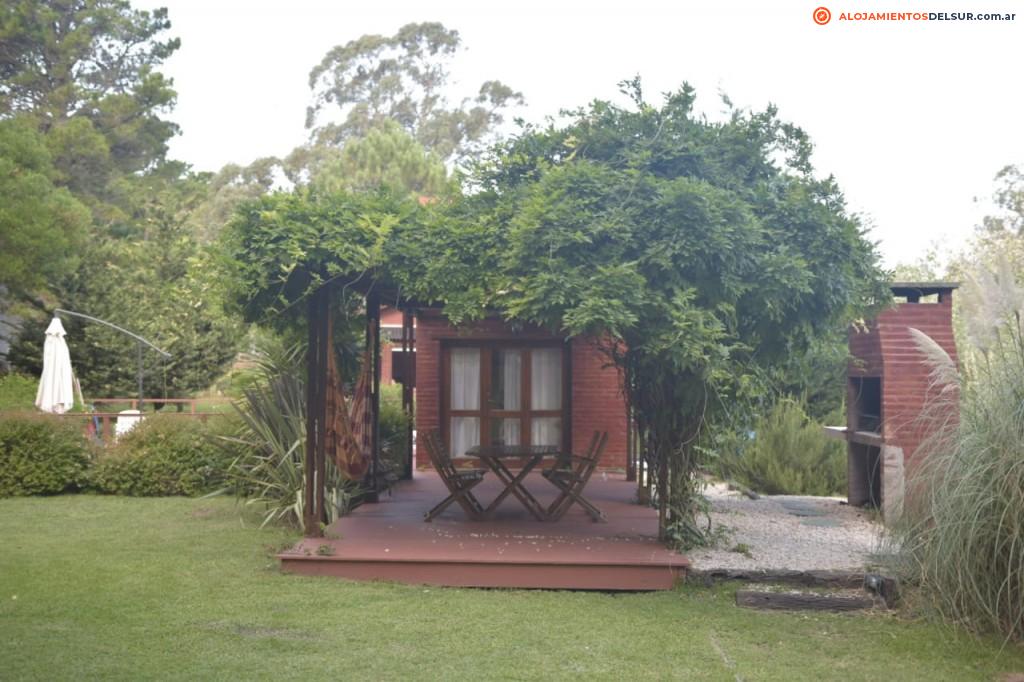 Las cabañas están ubicadas en el claro de un bosque donde se aprecia una hermosa vista del pinar, a 500 metros del Centro Comercial y 700 metros de la playa. Ofrecemos: Ropa blanca, Servicio de mucama, WI-FI, Alarma individual monitoreada, Piscina climatizada (Temporada: de octubre a marzo), Solarium, Quincho con pérgola y parrilla, Colección de DVDs Servicio de playa, Estacionamiento semicubierto. Nuestras cabañas están totalmente equipadas con cocina completa, heladera con freezer, horno microondas, tostadora y cafetera eléctrica, vajilla completa, TV LED con cable, reproductor de DVD, Calefacción a tiro balanceado, Aire Acondicionado frio-calor, Baño con hidromasaje, Baño con jacuzzi, Living con hogar a leña y Parrilla individual.