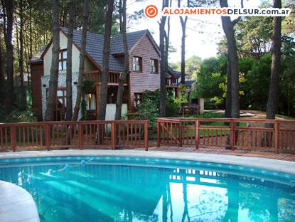 Desayuno casero, mucama, ropa de cama, cocina completa, TV con cable, DVD, Wi-Fi, 1 ó 2 dormitorios, baño con bañera o hidromasaje, living con hogar a leña, calefacción de tiro balanceado en todos los ambientes, caja de seguridad en la cabaña, deck individual con parrilla, estacionamiento, hamacas paraguayas, teléfono, equipamiento completo para bebés, sistema de alarma, juegos de mesa, juegos para niños, bicicletas, 5000 m² de parque y bosque, piscina climatizada, solarium, equipamiento para playa, contamos con hidromasajes en las cabañas de 1 dormitorio, biblioteca, colección de DVDs para los huéspedes. Ubicado a 100 mts del mar y del centro comercial.