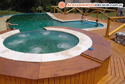 Cocina completa, ropa de cama, mucama, hogar a leña, cama con sommiers, calefacción tiro balanceado, TV CABLE, DVD, equipo de audio con CD, Internet WiFi, piscina climatizada en temporada alta, teléfono, horno microondas, cafetera, caja de seguridad en con cabaña, deck con parrilla, delivery de comidas, ubicado a 100 mts del mar en un bosque de pinos de 5000 m², seguridad, baños compartimentados con bañera y jacuzzi, secador de pelo, servicio de playa: 2 reposeras y sombrilla, piscina con yacuzzi, desborde finlandés y amplio solarium, salón de juegos con mesa de ping pong, sapo y metegol.